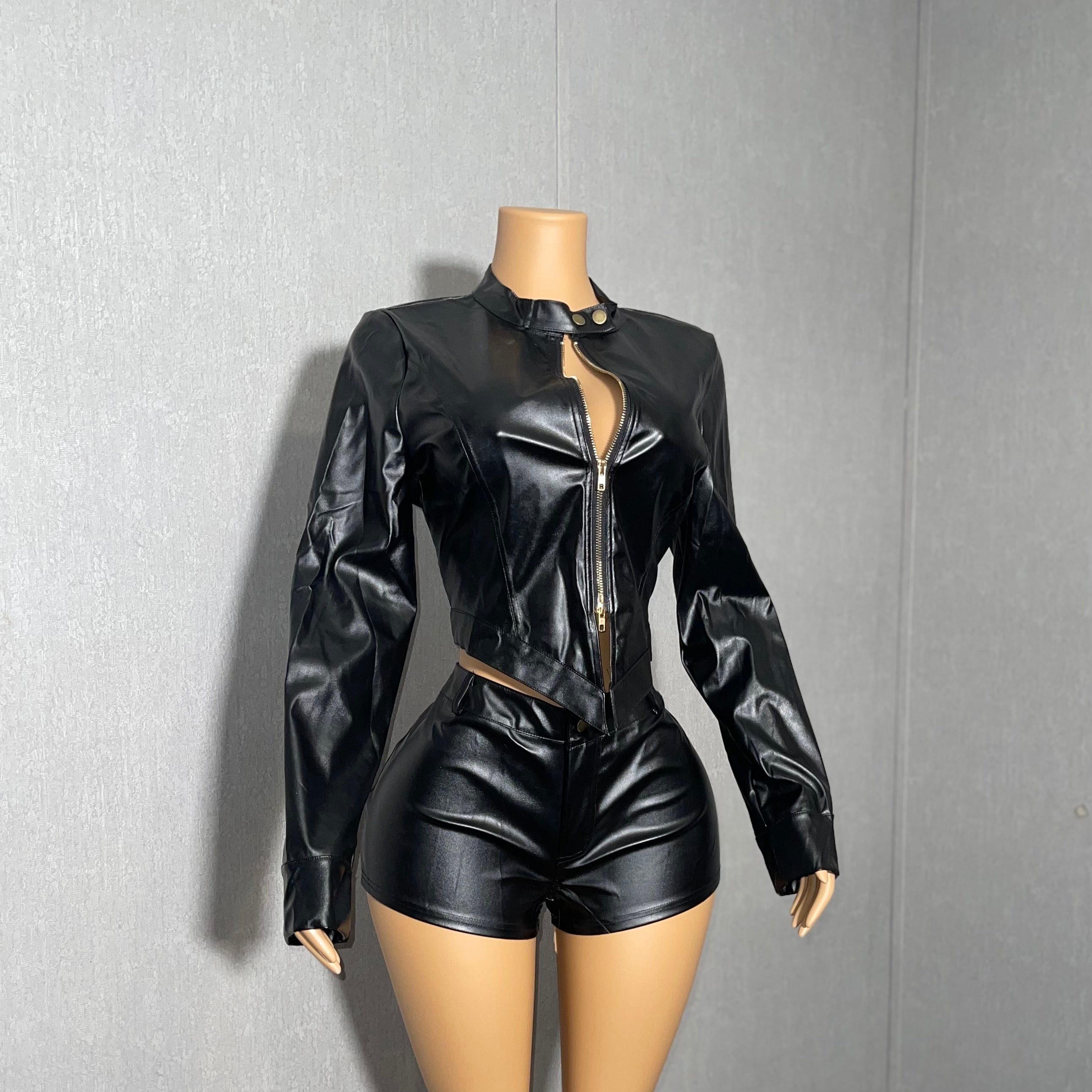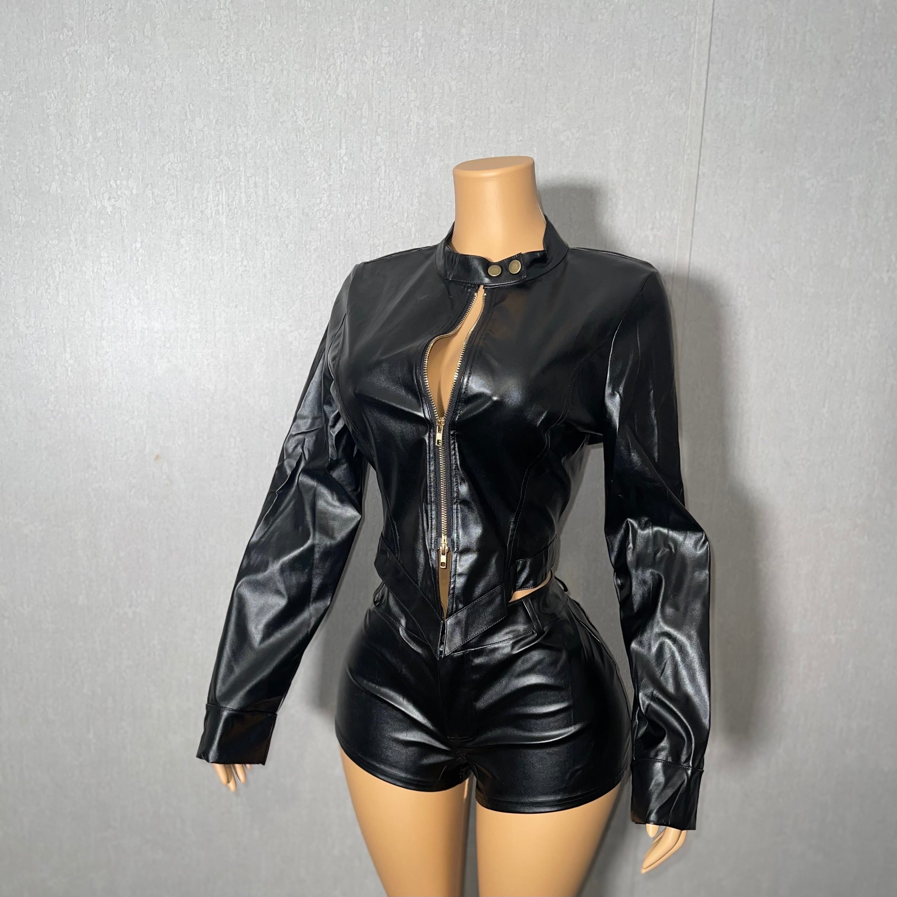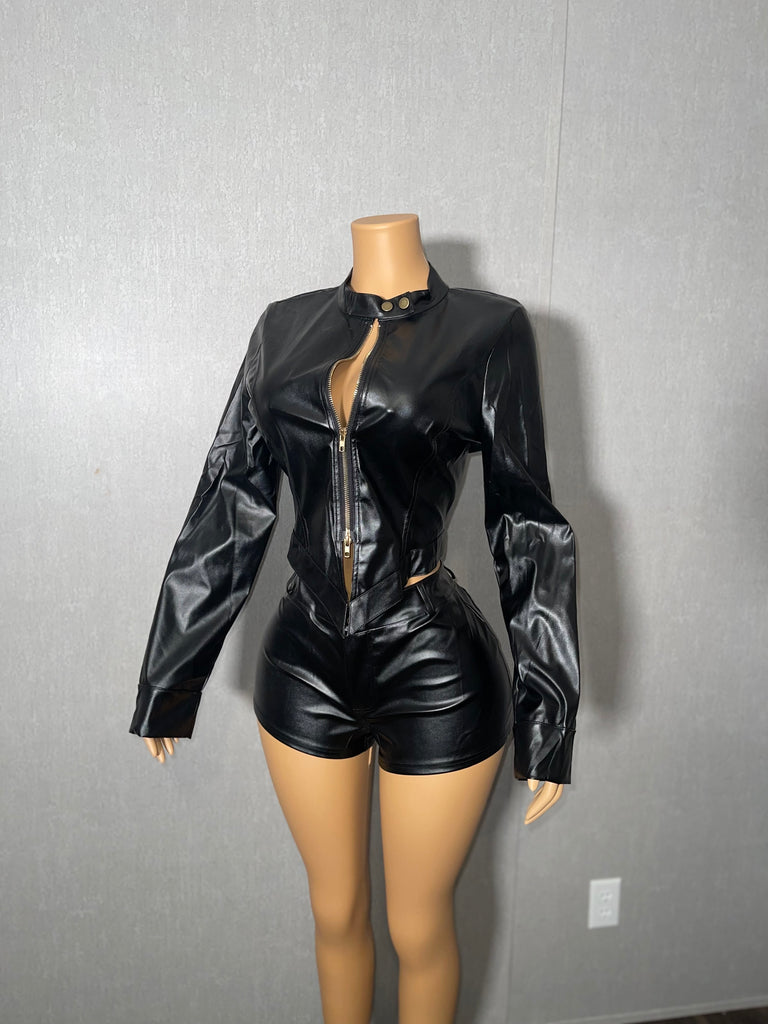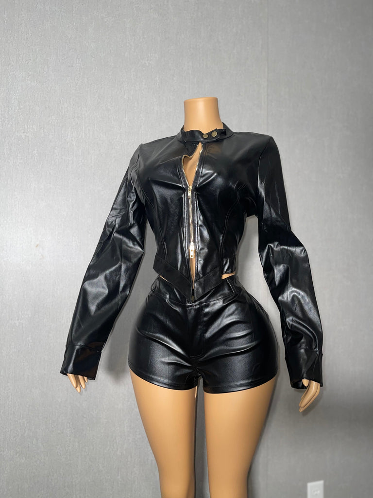 Elevate your style game with the Worth The Trouble Short Set! This two-piece set features a faux leather jacket and mini shorts, perfect for any occasion. Experience the luxurious feel of PU leather while making a bold statement. Upgrade your wardrobe today!
