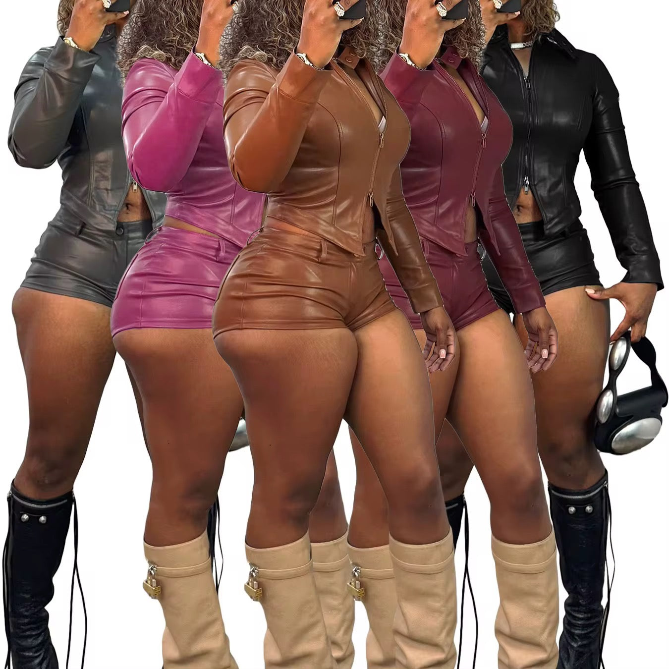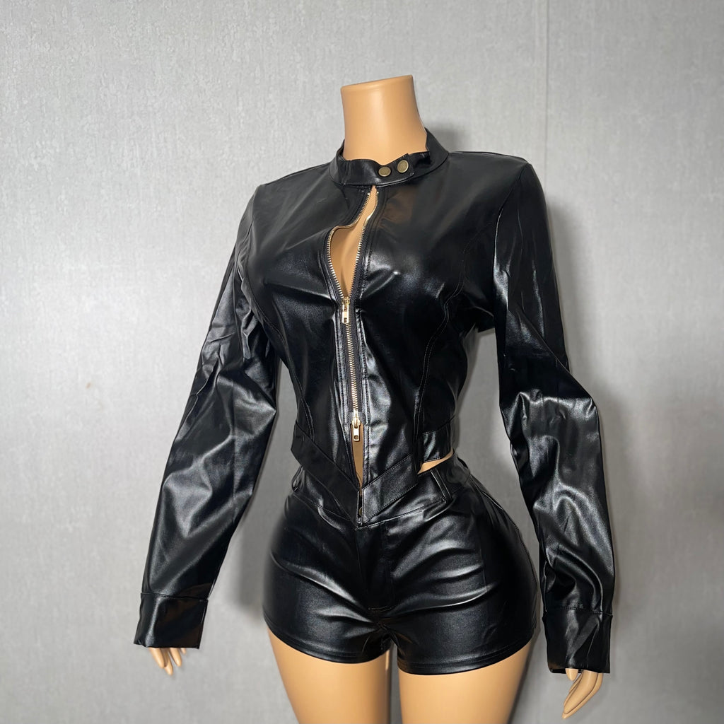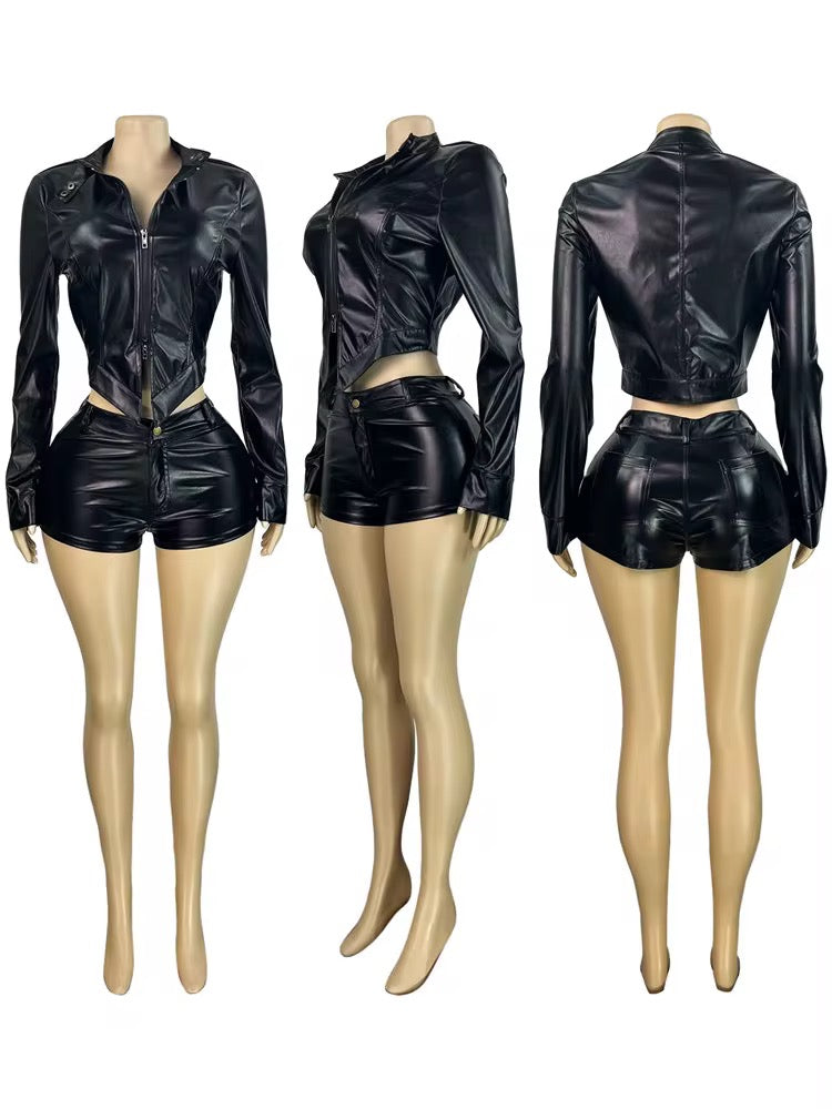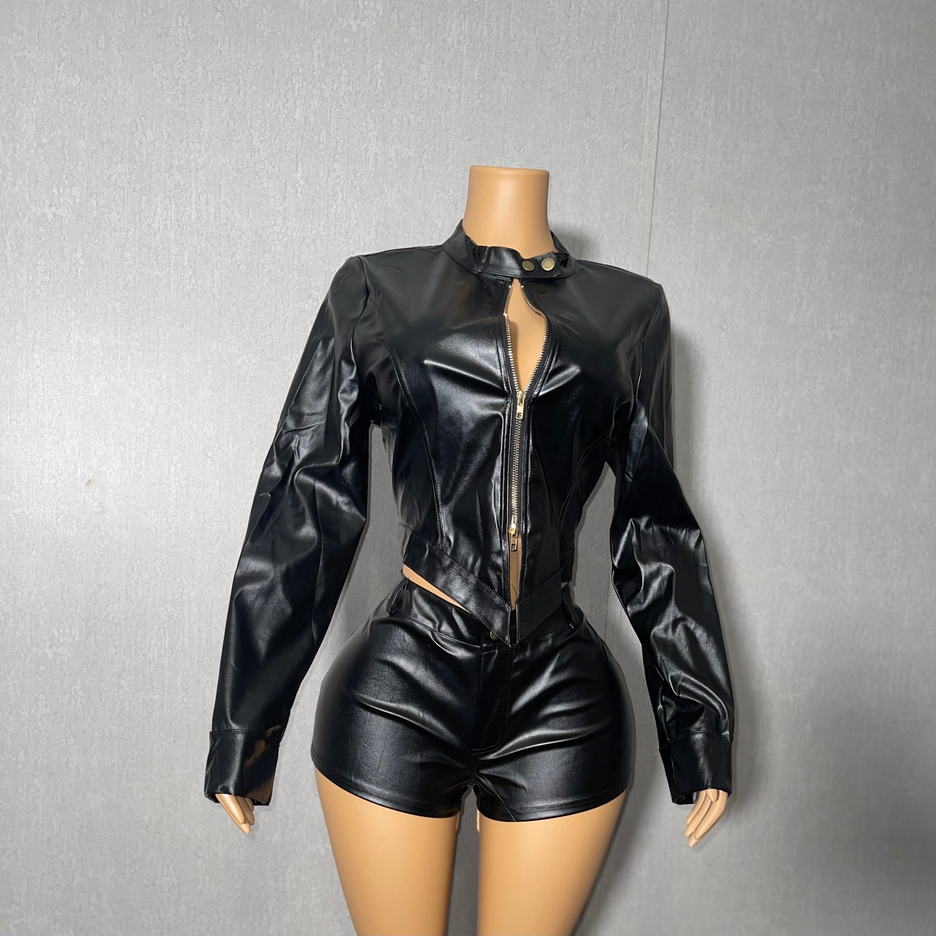 Elevate your style game with the Worth The Trouble Short Set! This two-piece set features a faux leather jacket and mini shorts, perfect for any occasion. Experience the luxurious feel of PU leather while making a bold statement. Upgrade your wardrobe today!