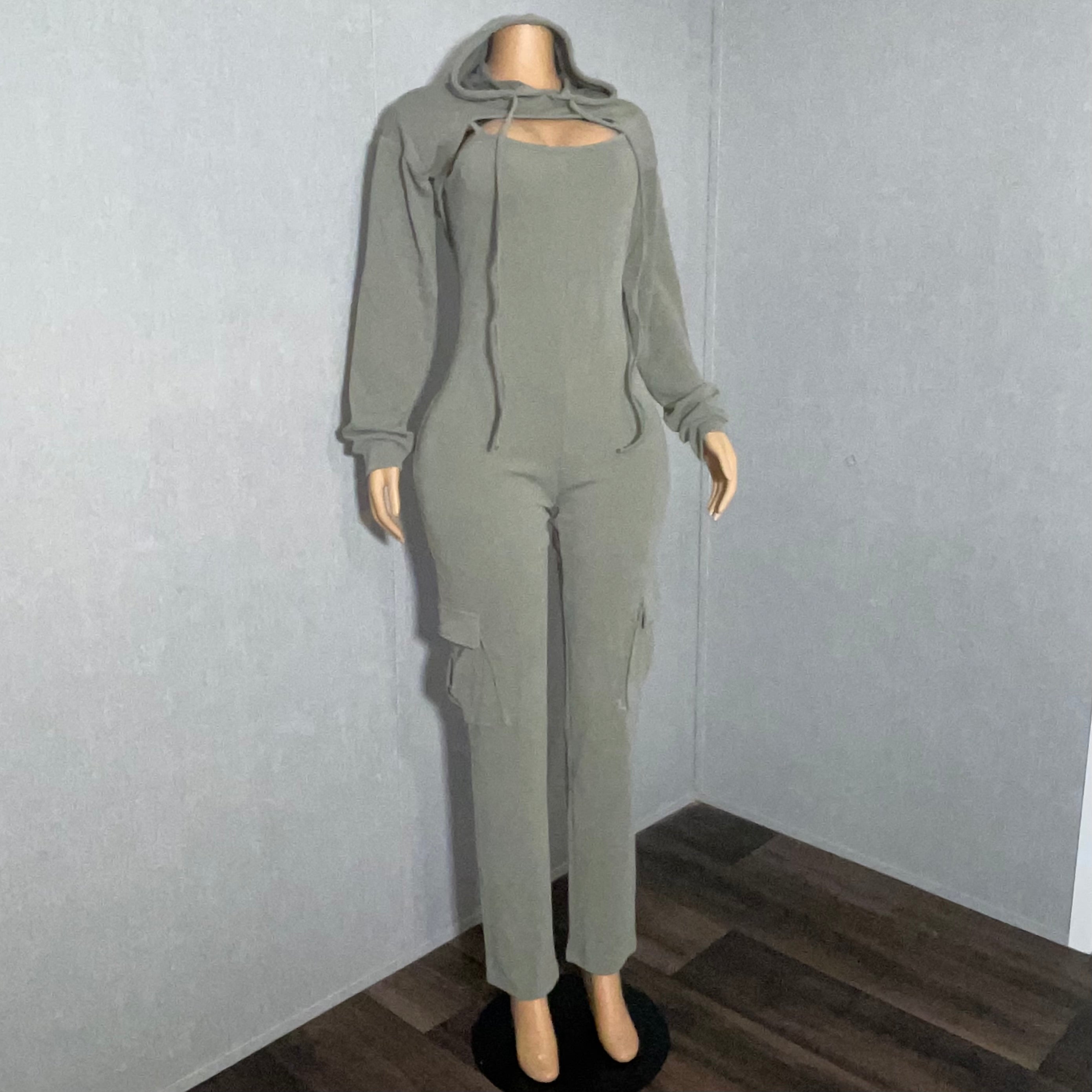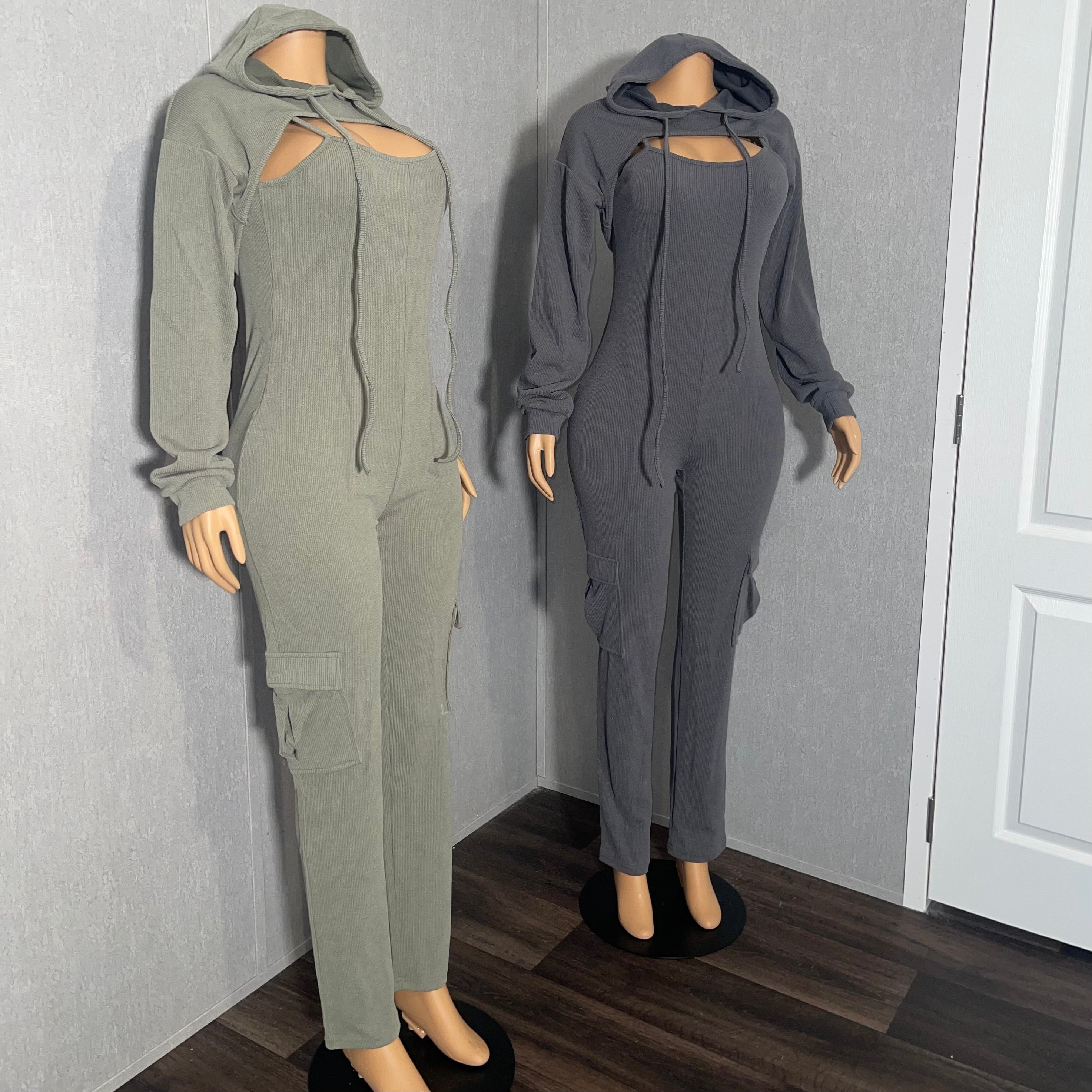 Step up your fashion game with the 'Casual Day Out Matching Set.' This 2-piece set is a perfect blend of chic and comfort, ideal for a casual day out with friends or family. The set includes a lace-up long sleeve halter crop top jacket and matching cargo style jumpsuit suit for an effortlessly coordinated look.
