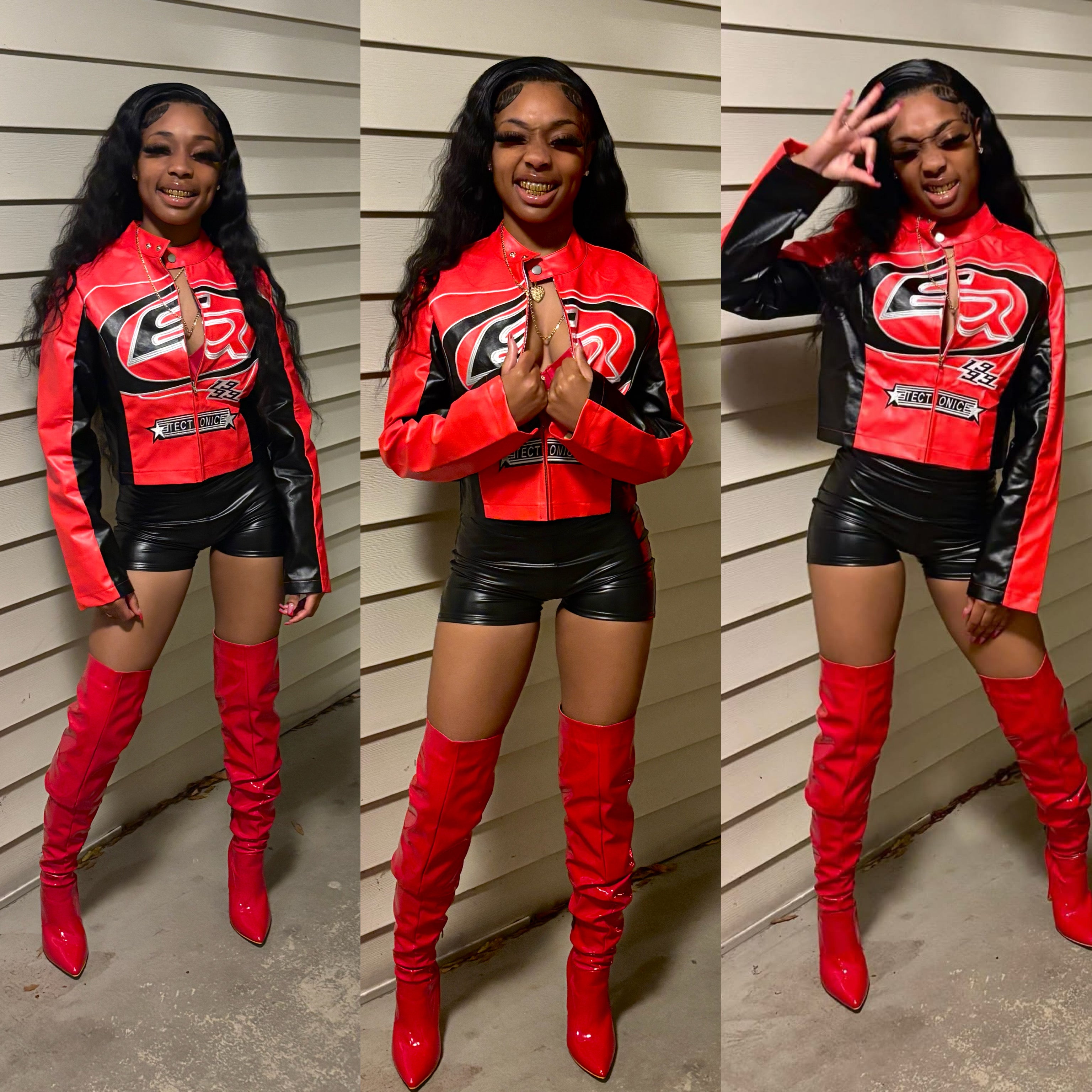 Experience the ultimate blend of style and comfort with our In The City With It Short Set! This trendy two piece set features a women's leather punk jacket with bold letter embroidery and a crop jacket for a fierce look. The matching shorts complete the outfit for a standout fashion statement. Elevate your wardrobe with this must-have ensemble today!